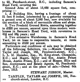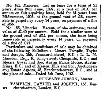 1953 Under the provisions of Isaac’s 1884 will, the deaths of the last of his children invoke the winding up of his estate, and the accounts are drawn up in 1955 in a 48-page document “Residuary Fund of Beatrice Helen Marsden 1953” prepared by the firm Tamplin Joseph & Flux, 122 Minories, London EC3. The total amount is £18,038, “by balance divisible between the remaining 13 children of the late I.M. Marsden or their descendants and carried to individual beneficiaries’ accounts”.