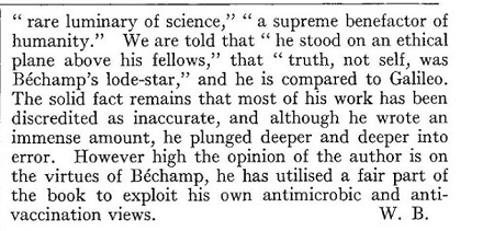 …. As to Pasteurism it was he who chiefly pointed out the debt civilisation owes to Professor Antoine Béchamp of Montpellier, whose discoveries were the foundation of the work carried on by the Pasteur Institute…. [He] was also specially interested in the subject of vivisection and vaccination and fearlessly expressed his views…. The funeral took place at the Boscombe Cemetery … and was conducted by the … Vicar of St. James, West Southbourne, which church the deceased had attended when his health permitted.